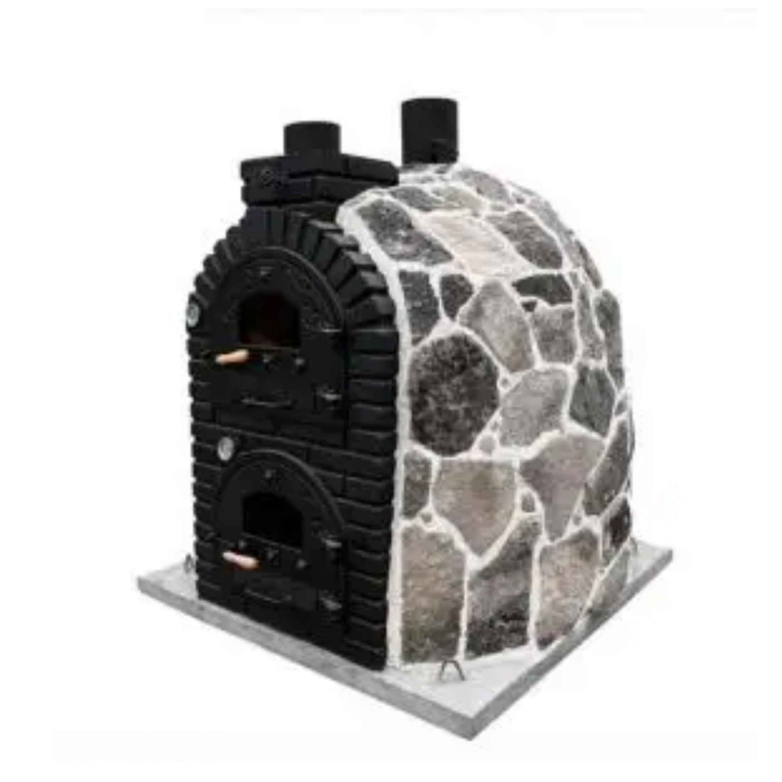 Four à bois avec foyer communiquant, finition classique. Disponible en 10 tailles supplémentaires. Four en terre cuite breveté. Portes en fonte. Tiroir avec régulateur en fonte. Isolation supérieure à 7 couches, isolation du foyer avec 100 % de matériaux réfractaires et isolants.