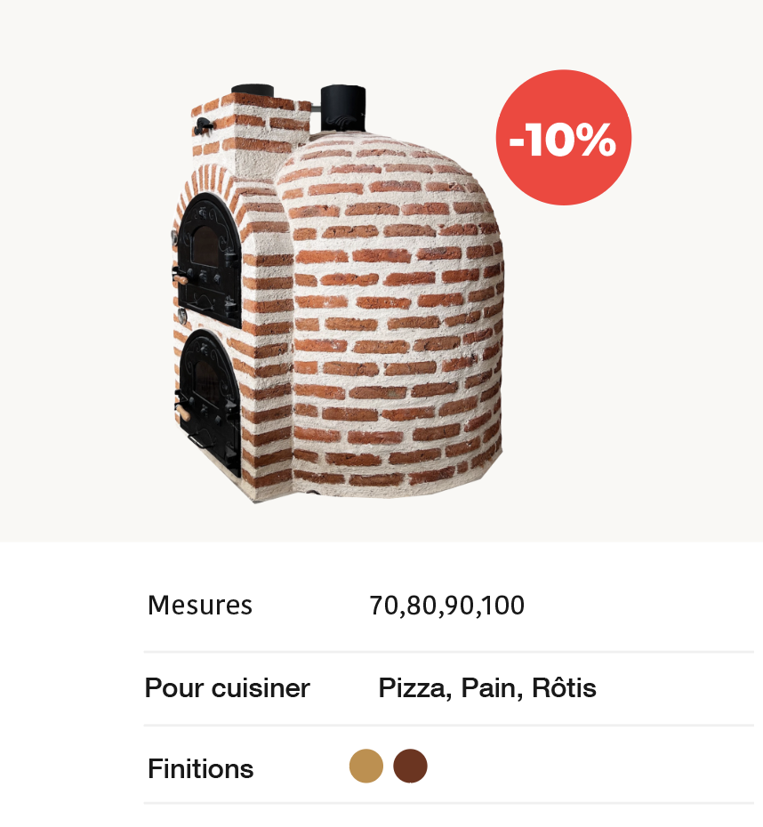 Le four à bois de chaleur enveloppante pour pizza, conçu avec un traitement spécial pour le climat de France, est disponible en deux finitions : brique rouge pour intempéries et brique en kaolin. Ce four est parfait pour les amateurs de pizza ainsi que les professionnels cherchant un produit durable et performant. Grâce à un système breveté et des matériaux de haute qualité, il offre des résultats exceptionnels, tout en étant respectueux de l’environnement.